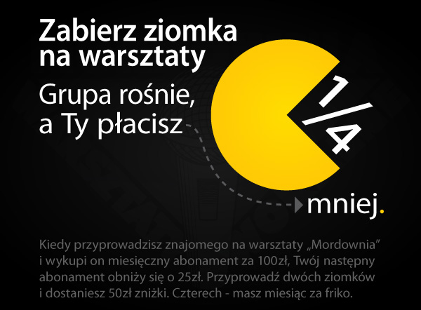 Rusza druga edycja akcji “Zabierz Ziomka”. Przyprowadź znajomego na warsztaty beatbox, za każdy wykupiony abonament dostaniesz jedne zajęcia za darmo. Promocje i ilość ziomków można mnożyć, więc jeśli będziesz dobrym “sprzedawcą”, nauczysz się beatboxować za friko.